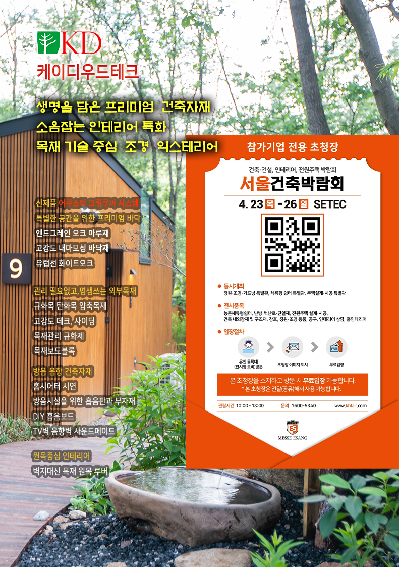 #케이디우드테크 #서울건축박람회 #건축박람회초대권 #서울경향하우징 #무료입장권