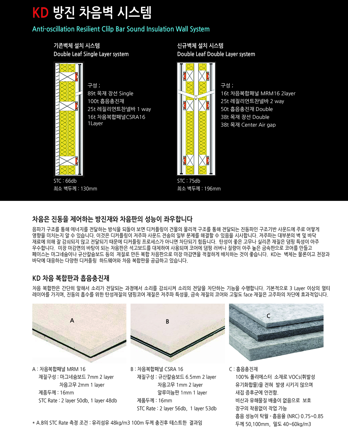 페이스는 마그네슘이나 규산칼슘보드 등의 재질로 만든 복합 차음판으로 미장 마감면을 적절하게 배치하는 것이 좋습니다. KD는 벽체는 물론이고 천장과