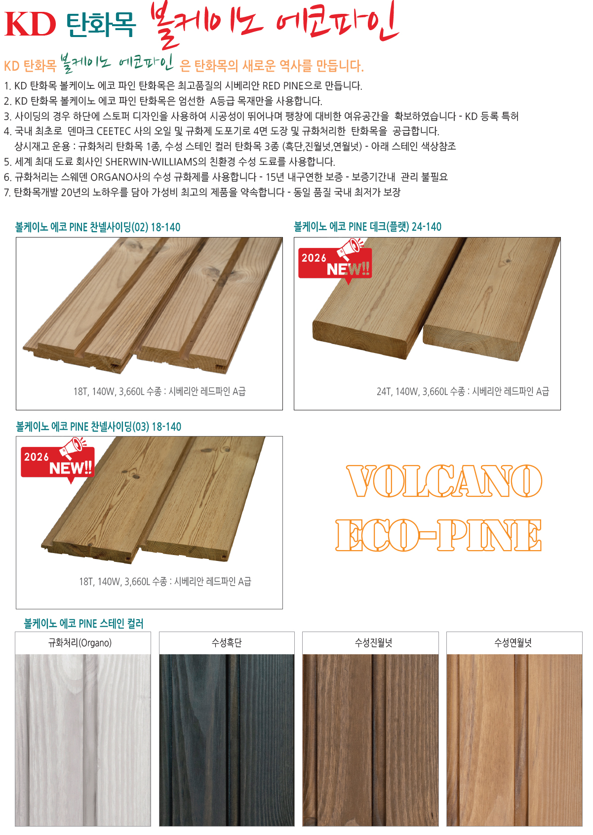 1. KD 탄화목 볼케이노 에코 파인 탄화목은 최고품질의 시베리안 RED PINE으로 만듭니다.