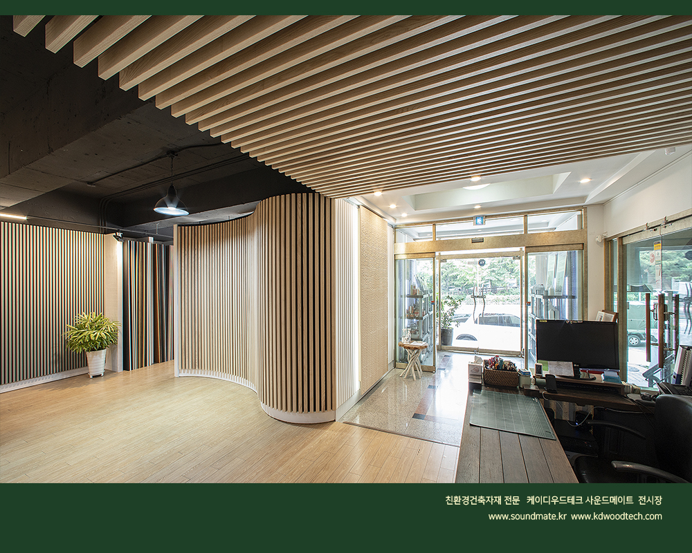 company > 전시장 미리보기 > 케이디우드테크 (사운드메이트) 전시장 : 천장부 음향시스템 "어쿠스틱 클릭루버"