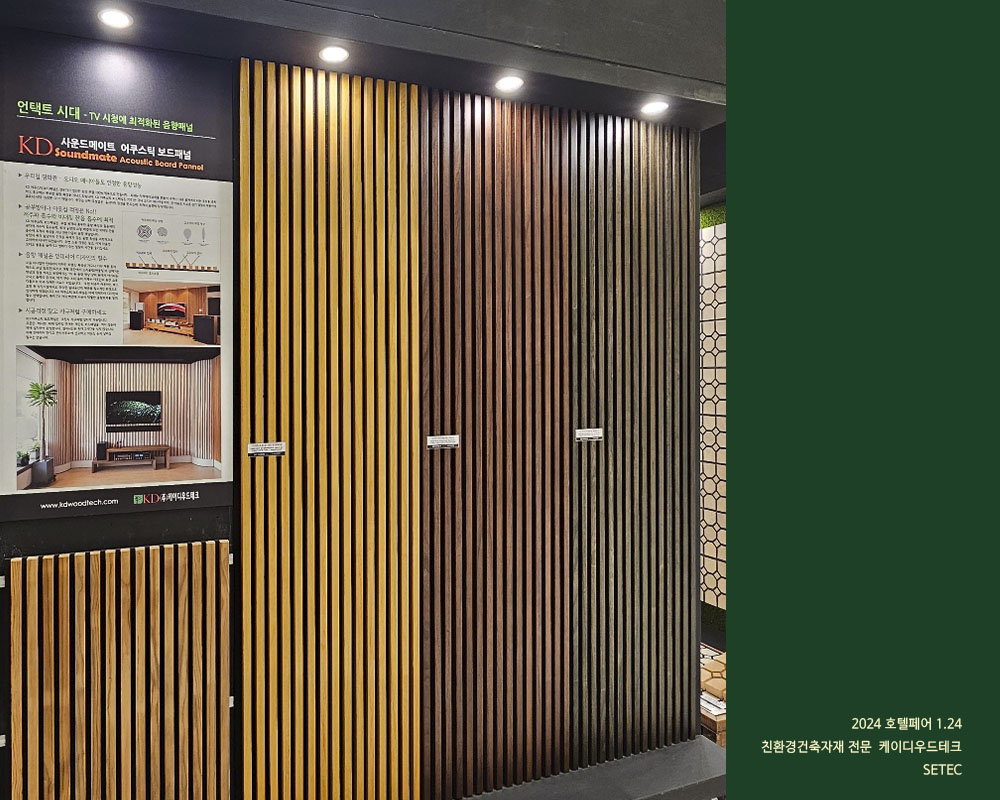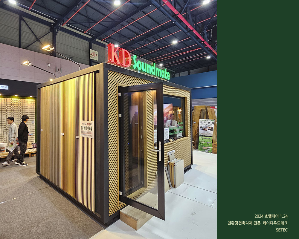 방음,차음,흡음, 음향관련 제품 사운드메이트, 홈씨아터 라인과 호텔 리조트 설계에 필요한 원목건축자재를 전시 상담을 진행했습니다.