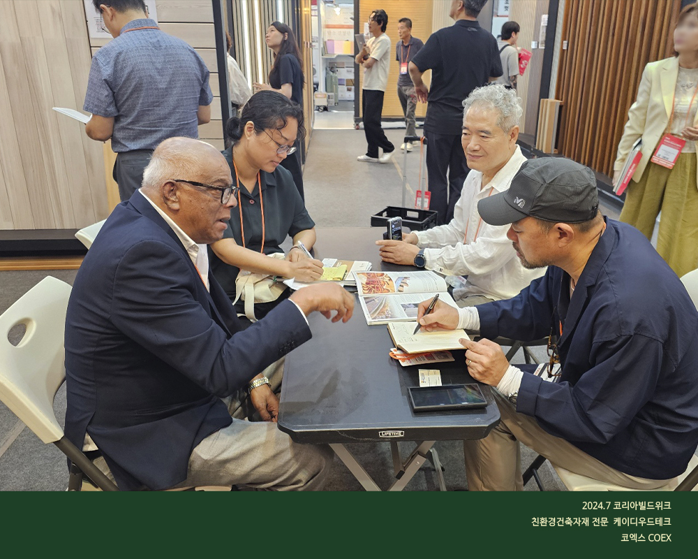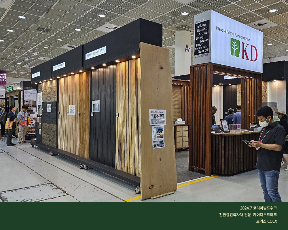 건강에 이로운 원목 건축자재를 유통하고 있는 케이디메이트의 핵심 제품, 특히 2024년 신제품을 중심으로 전시됩니다.