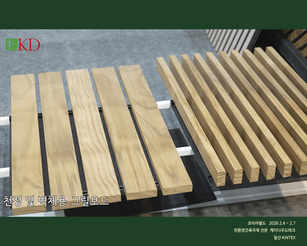#난연원목 #준불연목재 #원목루버스템 #목재루버 #건축박람회2026 #외장목재사이딩 #목재데크 #건축자재개발 #KDWOODTECH #케이디우드테크