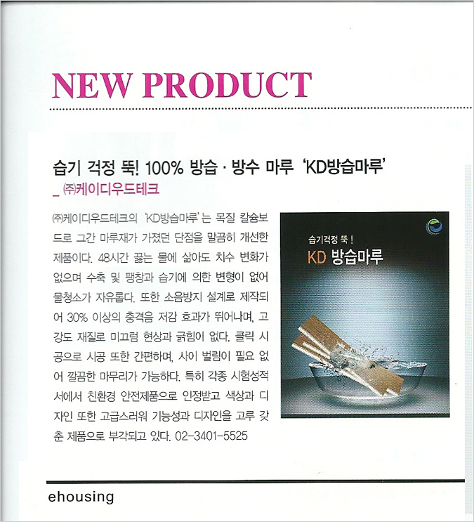 company > ♣ 언론보도 > Ehousing 2012.4월호- KD방습마루 보도