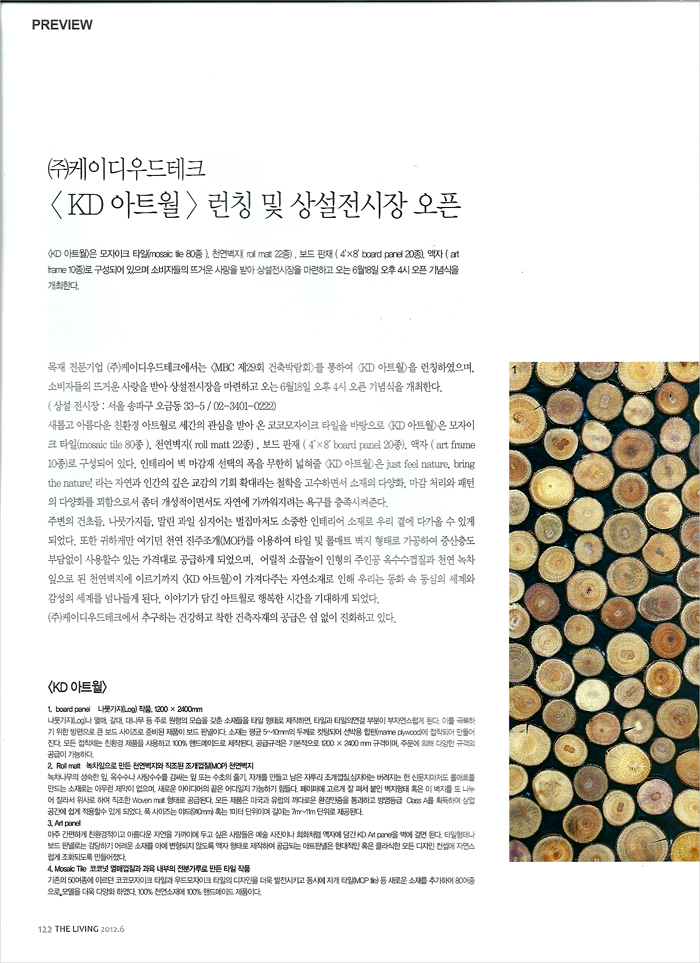 company > ♣ 언론보도 > 더리빙 Theliving 6월호에 실린 < KD 아트월> 런칭과 전시관 오프닝 소식