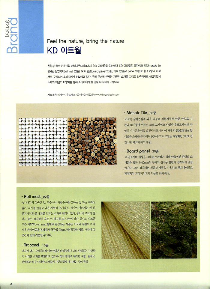 Brand-issue 에서 MBC건축박람회를 통해 런칭된 KD아트월을 소개했다. 부스 슬로건이었던 'Feel the nature , Bring the nature' 란 주제하에