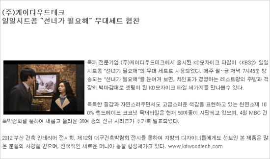 (주)케이디우드테크 일일시트콤 "선녀가 필요해" 무대세트 협찬