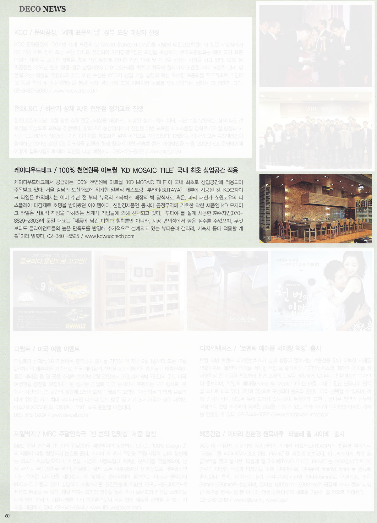 2011년 12월호 데코 저널 광고 및 케이디우드테크 관련 기사입니다.