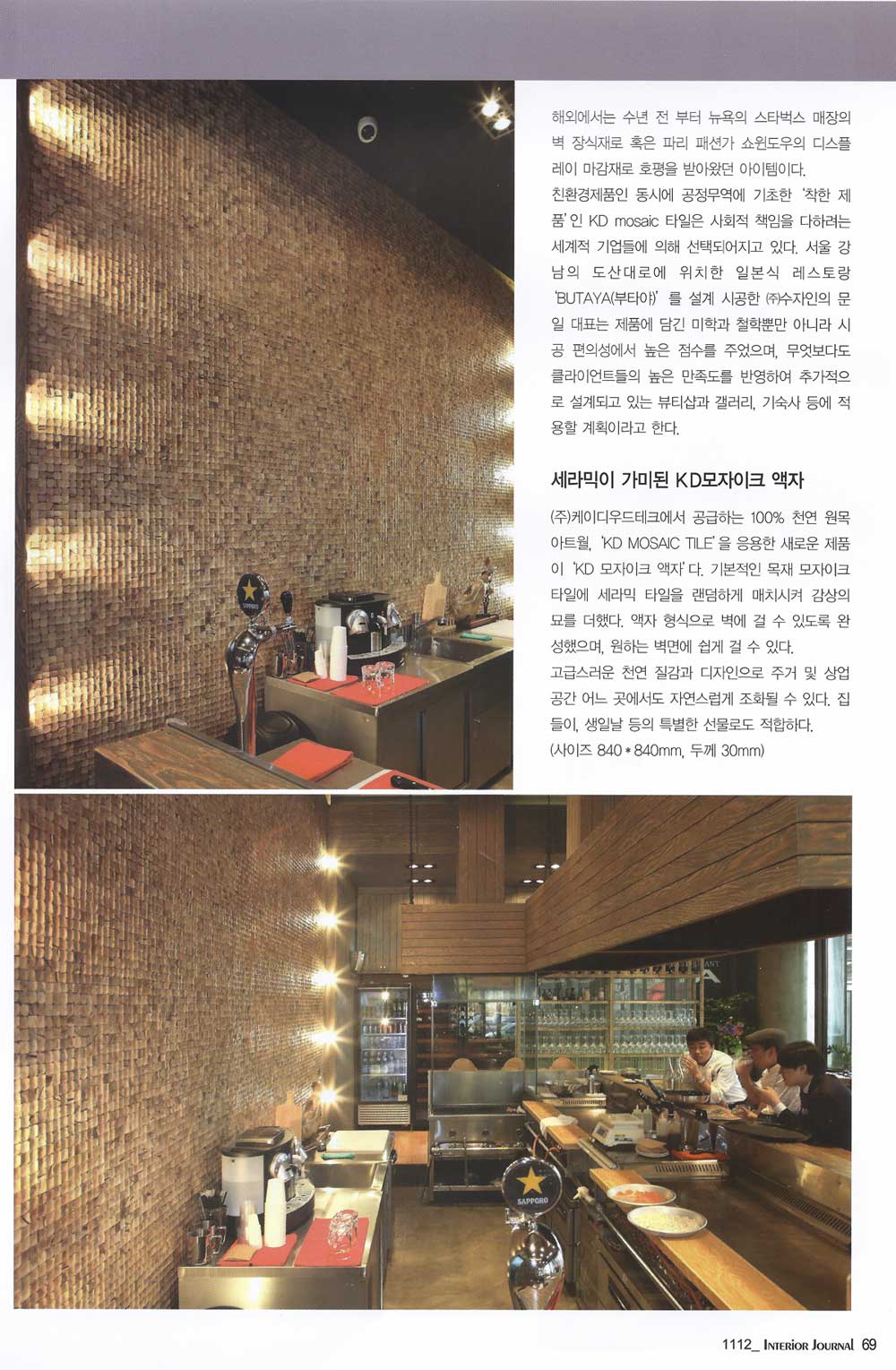 케이디 모자이크 타일에 대한 특집기사로 2면을 할애하여 보도하였습니다.