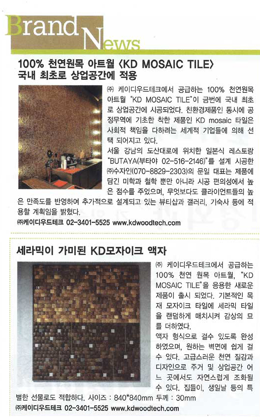 여성지 < 주부생활 > 2011.12월호 . brand news 수록 [이 게시물은 KD우드테크님에 의해 2014-07-01 22:43:09 3333에서 복사 됨]