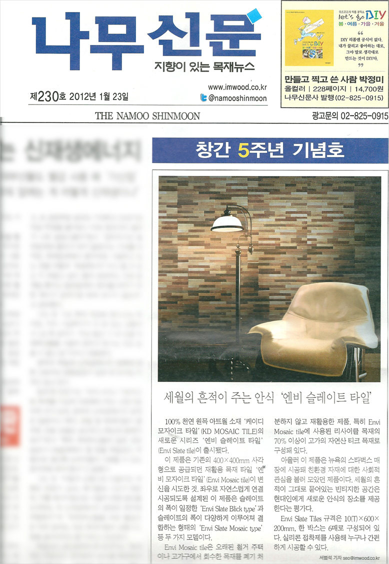 company > ♣ 언론보도 > 나무신문 230호 세월의 흔적이 주는 안식<엔비 슬레이트 타일>