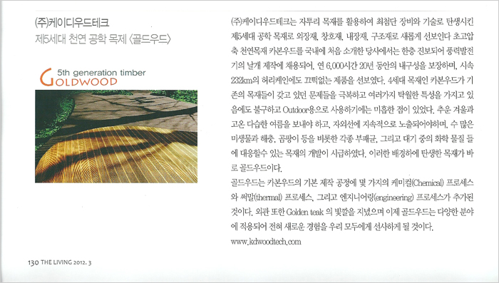 company > ♣ 언론보도 > 월간 더리빙 2012.3 <KD MOSAIC TILE> 광고 및 신제품 <골드우드> 기사