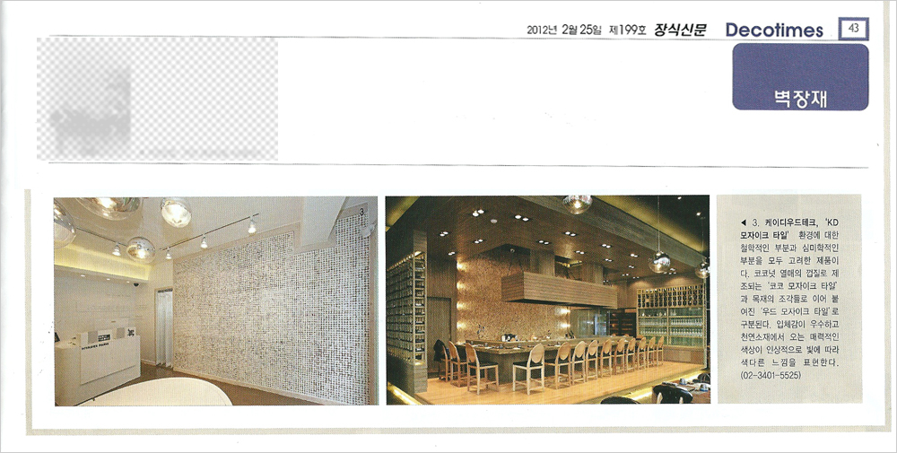 장식신문 No 199. 2월 25일 기사 - 벽장재 기획기사 게시글을 twitter로 보내기 게시글을 네이버로 북마크 하기 공유하기