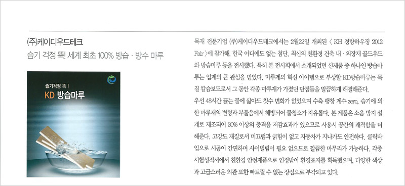당사의 신제품인 KD방습마루 광고가 추가되었다.