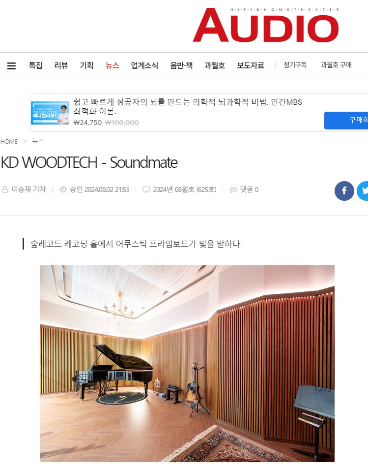 company > ♣ 언론보도 > KD WOODTECH - Soundmate 숲레코드 레코딩 홀에서 어쿠스틱 프라임보드가 빛을 발하다 [월간오디오 2024.8.2]