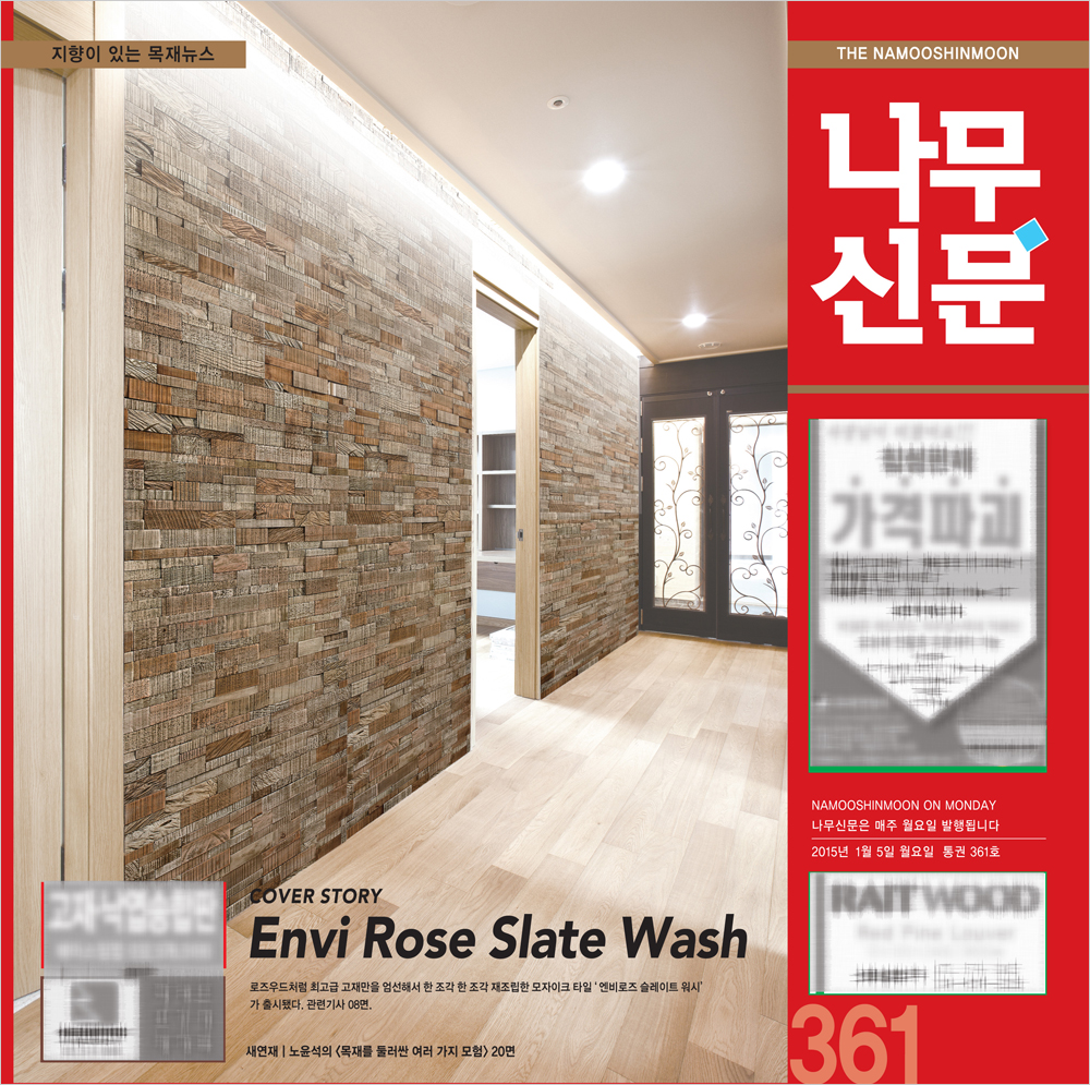 나무신문 2015 1.6 일자 표지 사진에 실렸어요 / 엄선한 고재 '엔비 로즈 슬레이트 워시' 게시글을 twitter로 보내기 게시글을 네이버로 북마크 하기 공유하기