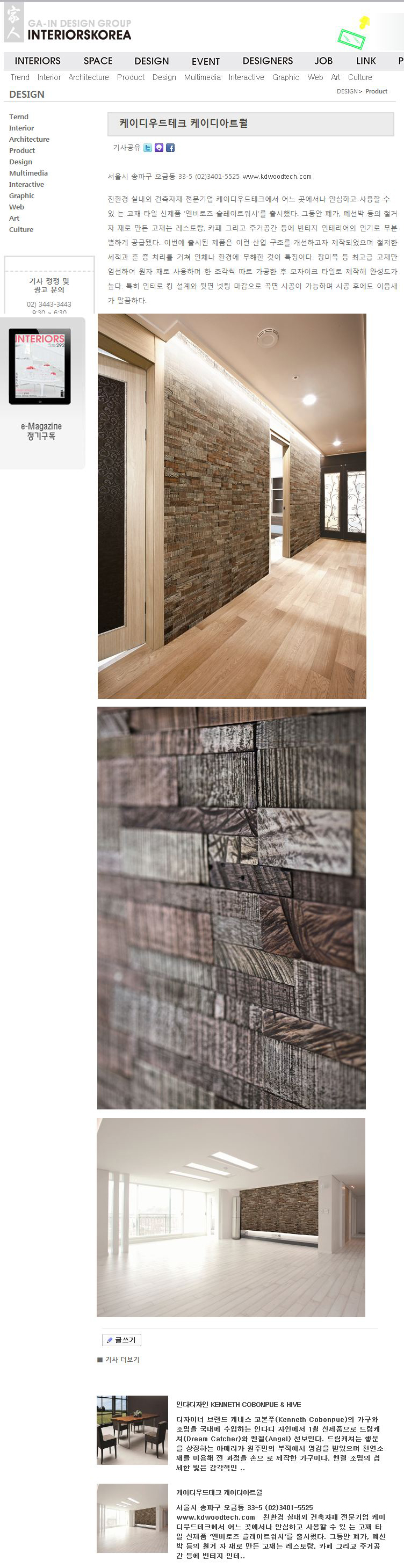 Interios 건축잡지  신년호에  케이디아트월 신제품 소개