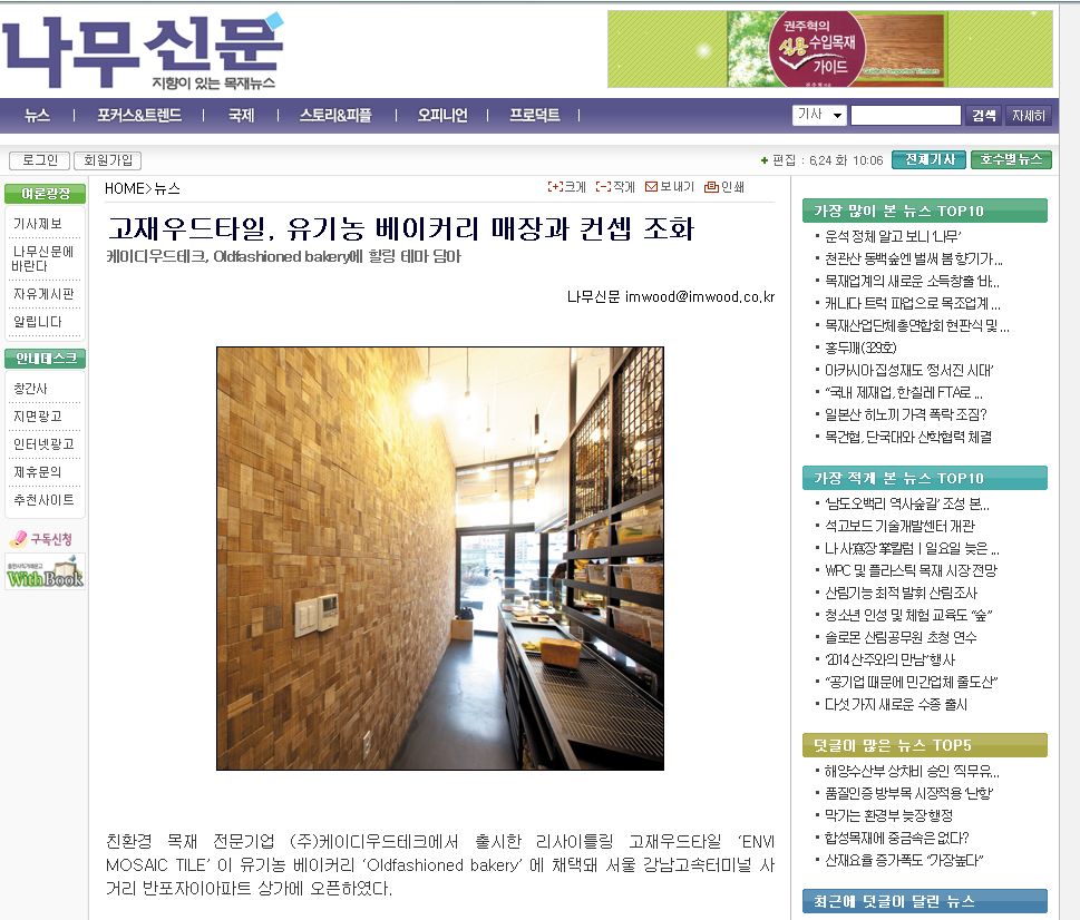 company > ♣ 언론보도 > 고재우드타일, 유기농 베이커리 매장과 컨셉 조화 -나무신문