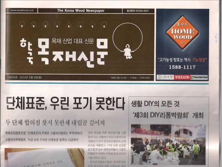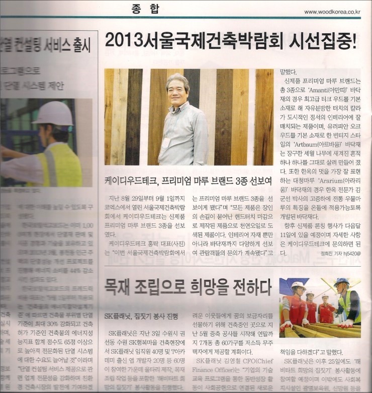 company > ♣ 언론보도 > 케이디우드테크, 프리미엄 마루 브랜드3종 선보여-한국목재신문 2013년 9월 9일 제364호