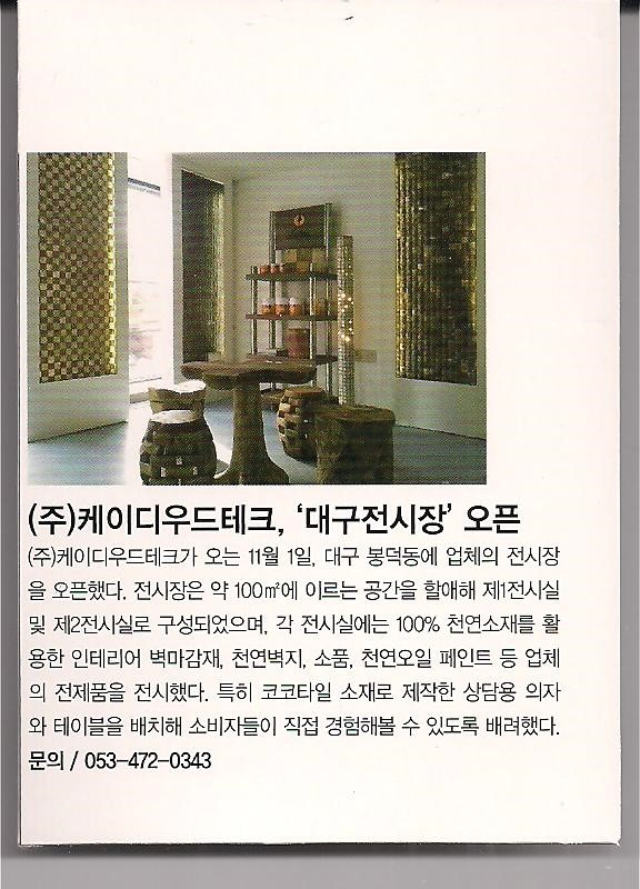 company > ♣ 언론보도 > (주)케이디우드테크 KD NOVA 탄화목사이딩 인테르니 11호