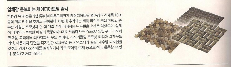 친환경 목재 전문기업 (주)케이디우드테크가 케이디아트월 벽마감재 신제품 10여종의