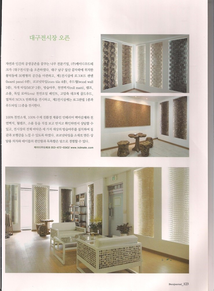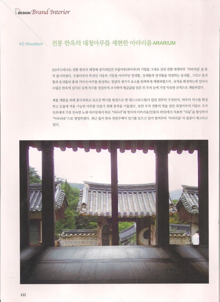 company > ♣ 언론보도 > (주)케이디우드테크 대청마루를 재현한 아라리움 본격출시,대구전시장 오픈! 데코저널 2013.12월호