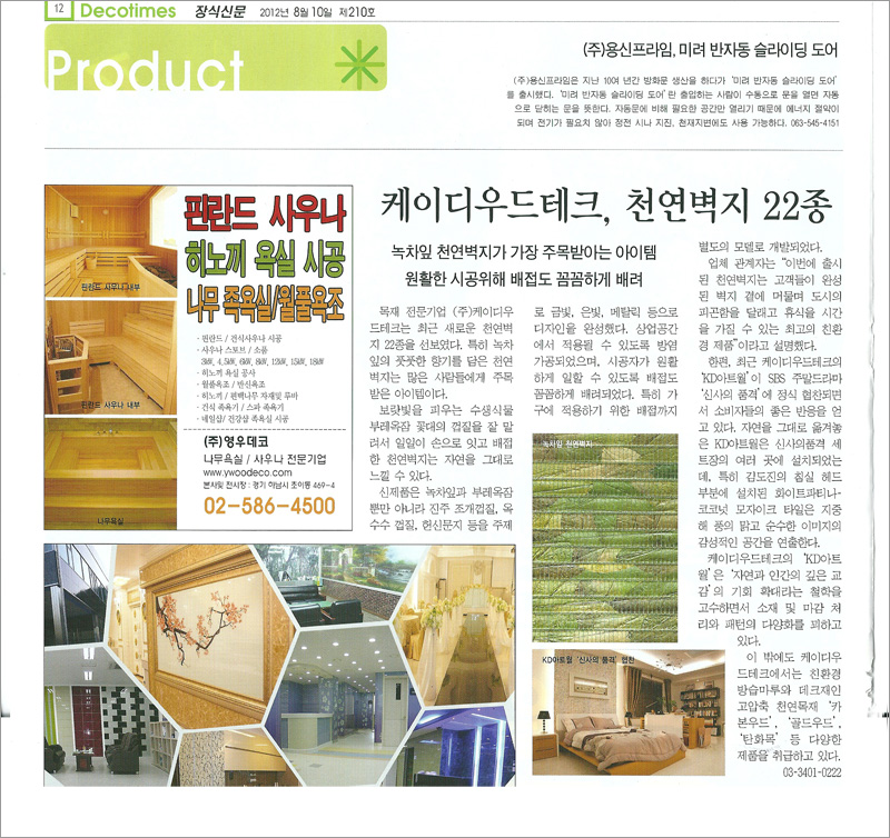 company > ♣ 언론보도 > 천연벽지 22종 ~ 녹차잎 벽지가 가장 주목받는 아이템 / 장식신문 8월 10일자