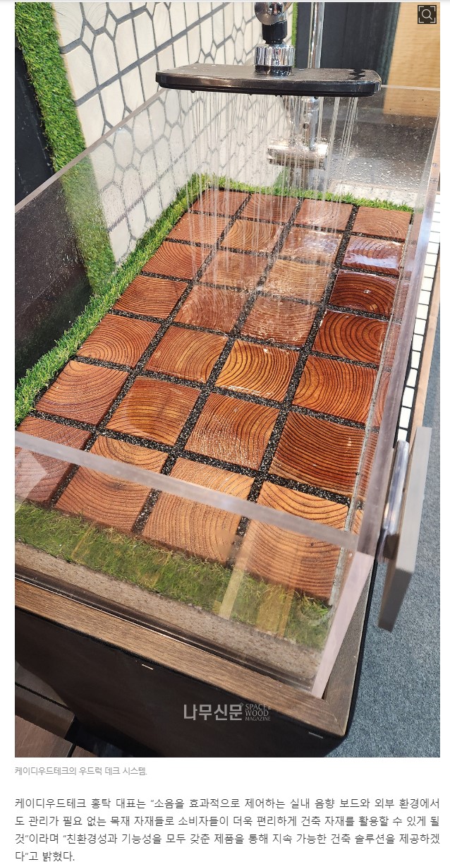 케이디우드테크 홍탁 대표는 “소음을 효과적으로 제어하는 실내 음향 보드와 외부 환경에서도 관리가 필요 없는 목재 자재들로 소비자들이 더욱 편리하게 건축 자재를 활용할 수 있게 될 것”이라며 “친환경성과 기능성을 모두 갖춘 제품을 통해 지속 가능한 건축 솔루션을 제공하겠다”고 밝혔다.