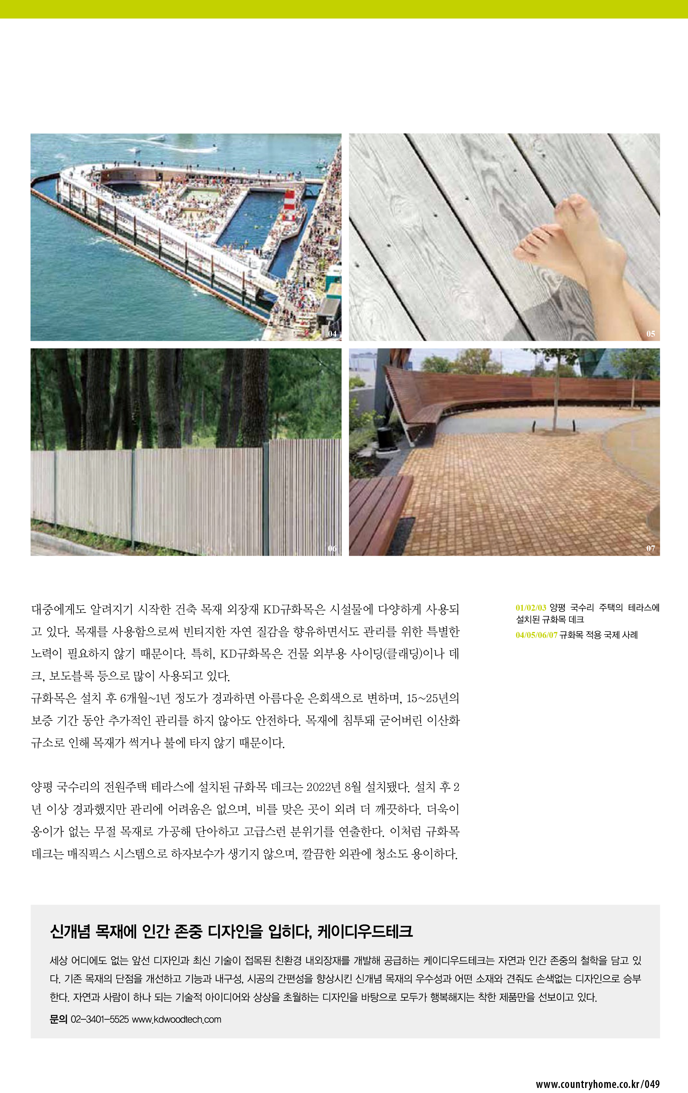노력이 필요하지 않기 때문이다. 특히, KD규화목은 건물 외부용 사이딩(클래딩)이나 데
