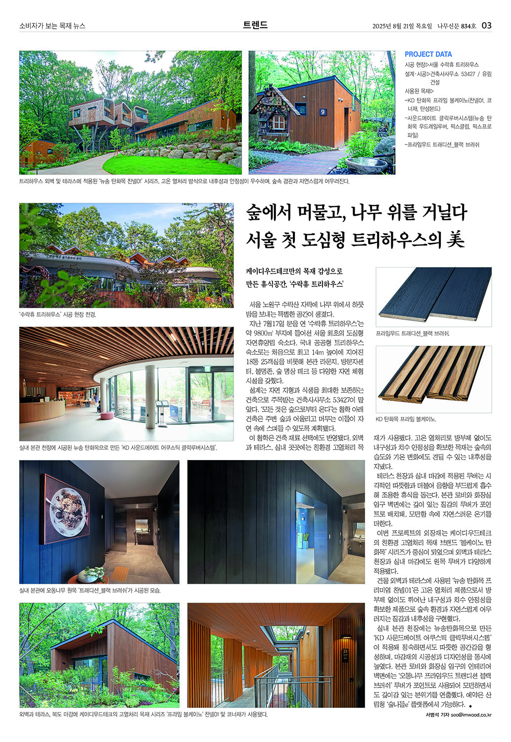 '모든 것은 숲으로부터 온다'는 수락휴의 핵심 가치는 건축 재료에도 그대로 반영되어 있다.