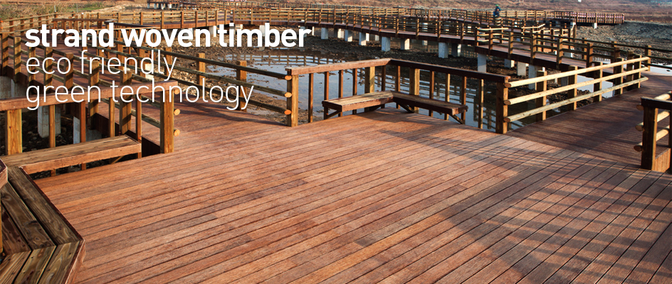 압축 목재는 기본적으로 버려지거나 쓸모없는 목재를 이용하여 만들어집니다. 우드 칩이나 목분, 혹은 땔감 용도로 사용하기에도 수거 비용이 더 많이 소요되어 버려지던 목재들을 사용합니다. 젓가락 이상의 두께를 가지고 있는 목재나 나뭇가지라면 어떤 목재이던 제약이 없습니다. 지속적인 목재자원을 활용하기 위해 꼭 필요한 조림사업과 조림사업의 성공을 위해 필수적인 간벌로 인해 버려지는 목재자원의 재활용은 지구환경 보존을 위한 온실 방지효과를 효율적으로 수행합니다. Strand Woven Timber란 호칭은 소경재나 간벌재를 기계적으로 Strand화 (배향성을 지닌 목재 가닥)으로 만든 다음에 Strand 된 목재의 Fiber와 Fiber를 접착제와 고압으로 압축 결합하여(woven) 만들어진 목재라는 의미입니다.