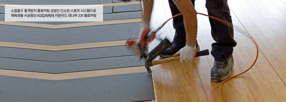 KD 압축목재(카본우드)로 만든 플로어링이 설치된 수원의 고등학교 체육관 |