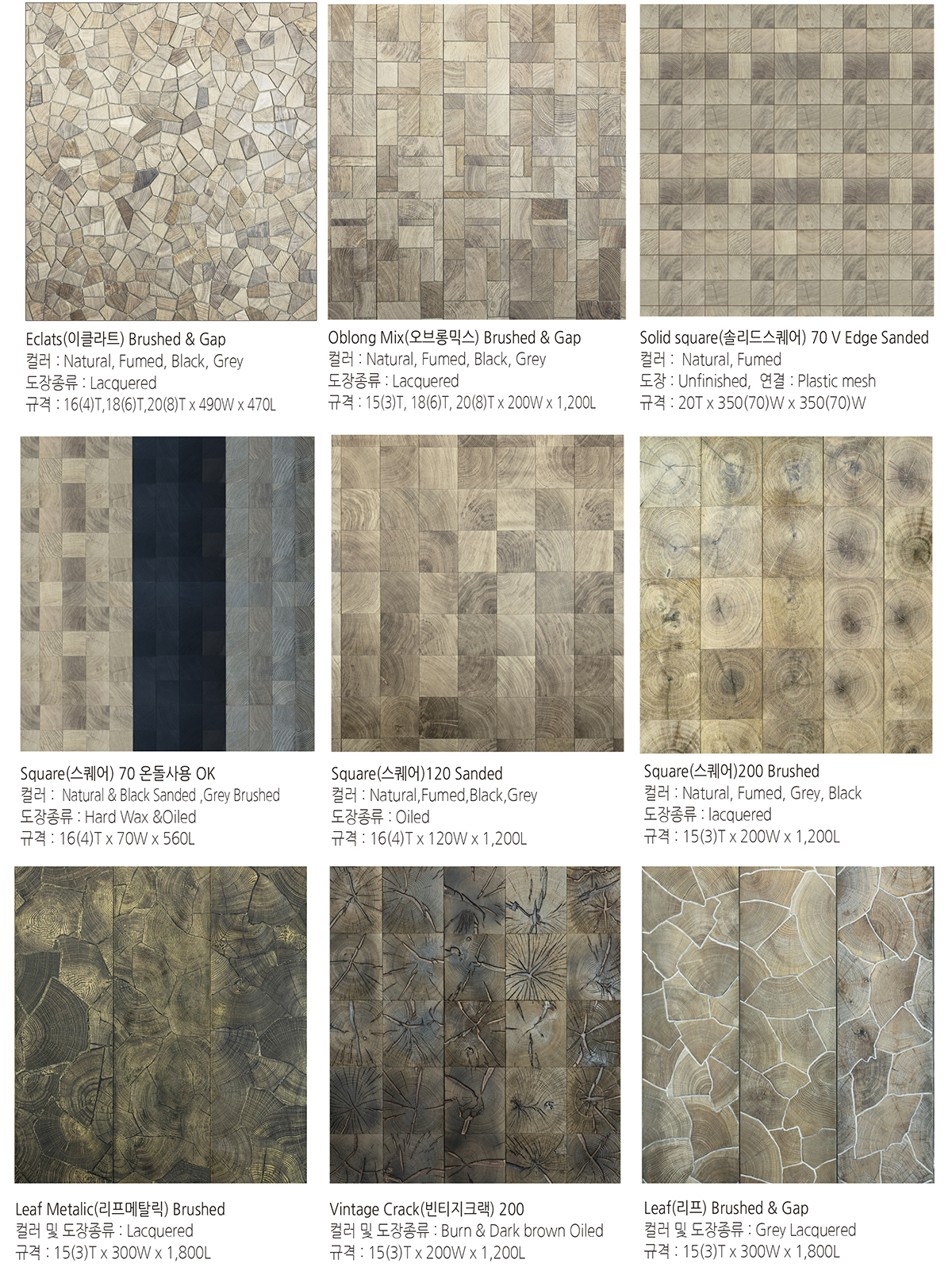 디자인: Square / Eclats / Leaf / Mix / Vintage Crack 등 8종 이상