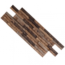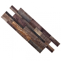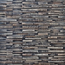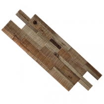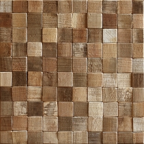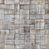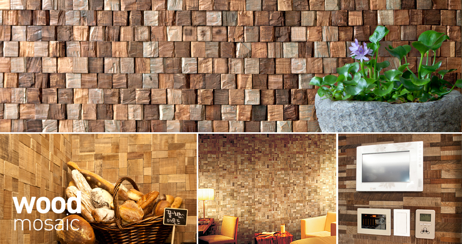 오래된 고재(古材)를 원료로 한 제품들로서 가볍고 포근하며, 수축 팽창에서 자유롭습니다. 80% 이상이 고재 티크(teak)이며 버려지는 자원을 소중히 다시 사용하려는 깊은 배려가 있습니다. 세월의 흔적을 간직한 우드 모자이크 타일은 아트월, 혹은 빈티지 가구에 적용할 수 있습니다.