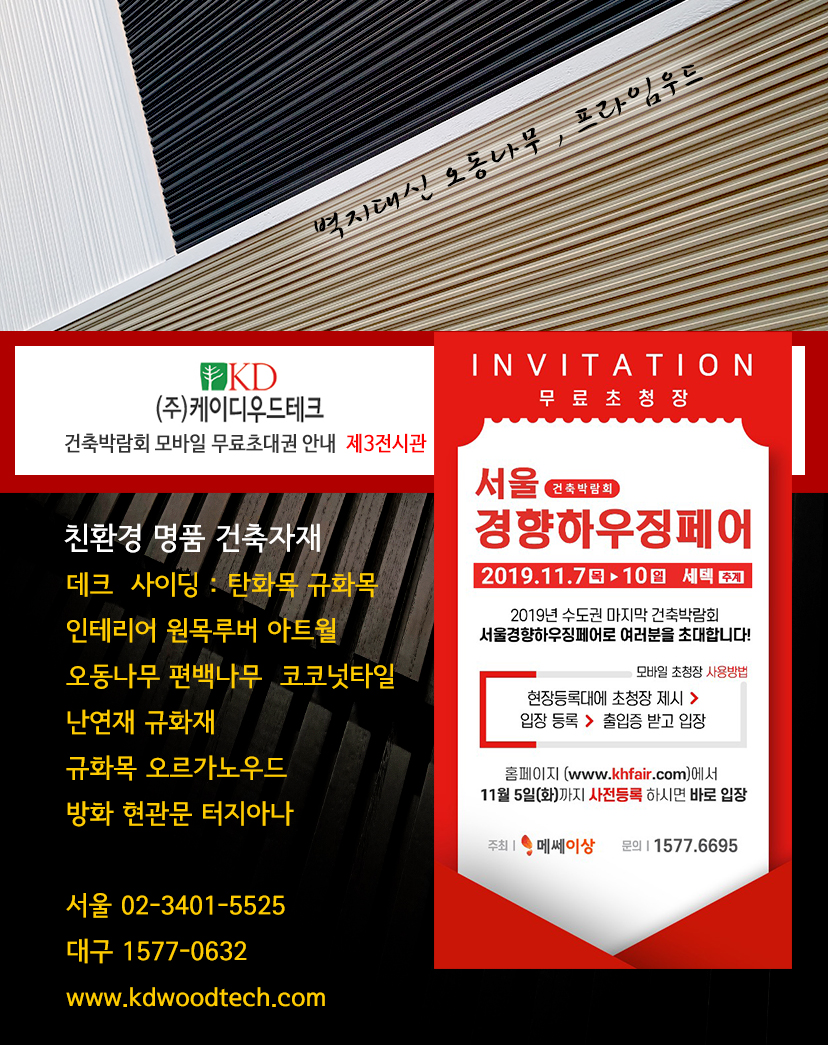 #건축박람회 #서울경향하우징페어 #무료초대권 #무료입장권 #부스배치도 #오르가노우드 #규화목 #오르가노우드데크 #프라임우드 #외벽재 #kd리브 #탄화목 #사이딩 #오동나무 #신제품 #채널18 #오트밀입고 #경향하우징 #코엑스 #전원주택 #하우징 #계단인테리어 #복도인테리어 #아트월 #인테리어 #코코넛타일 #우드타일 #우드판재 #로그보드 #아트월인테리어 #자개타일 #알바노믹스 #자이레 #파인웨이브 #mop #포인트벽인테리어 #케이디아트월 #케이디우드테크 #케이디메이트 #집짓기 #리모델링 #셀프인테리어 #diy #규화목 #규화제 #규화처리목재 #Sioo시우