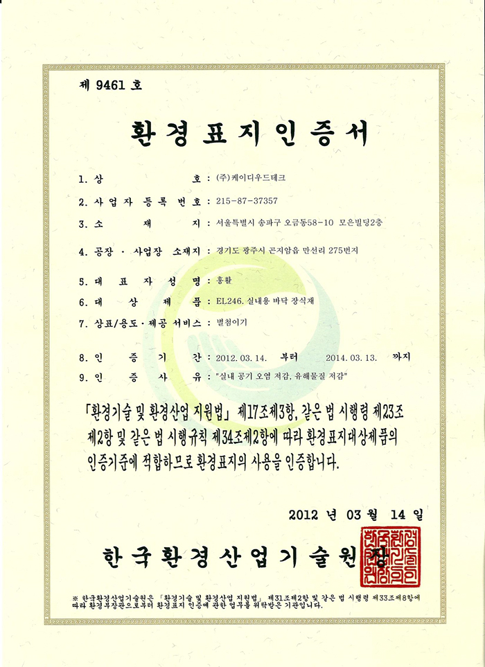 company > 공지사항 > 환경표지 인증서 획득