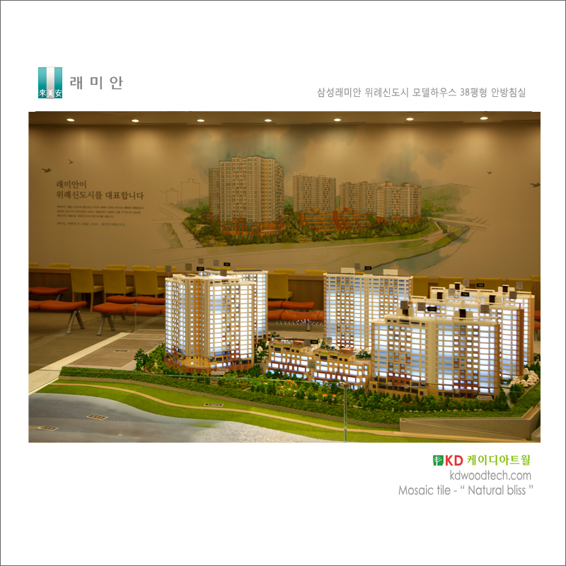 국내 아트월 전문 회사로서 명성이 높은 ㈜케이디우드테크 제품이 삼성 래미안 아파트에 채택되어 모델하우스를 통해 일반에게 공개되었다.