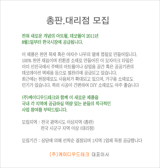 email : kdwoodtech@hotmail.com  Copyright 2010 - (주)케이디우드테크 KD Woodtech Co.,Ltd. All Rights Reserved.