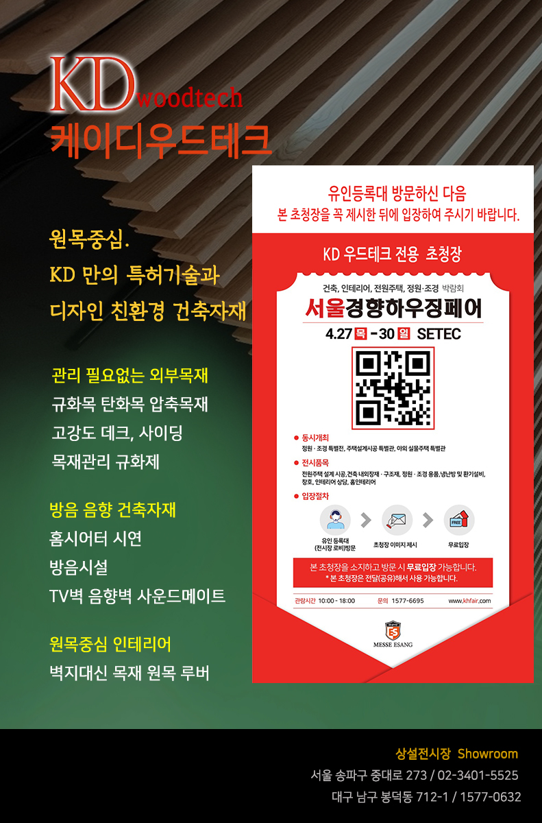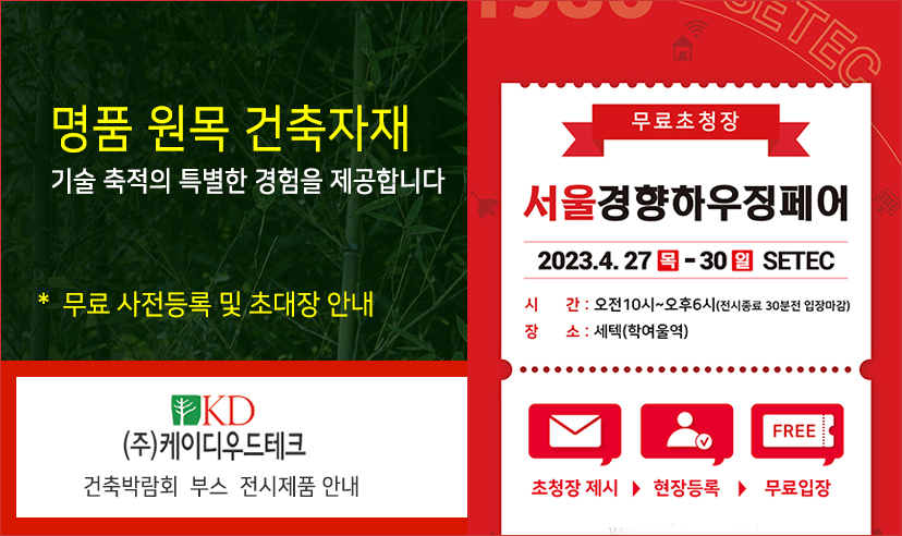 company > 공지사항 > 2023 서울경향하우징페어 케이디우드테크 참가, 초대장