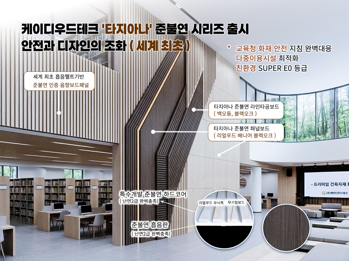 케이디우드테크, 세계 최초 준불연 난연2성능 통과한 타지아나 음향보드등 신제품 3종 출시