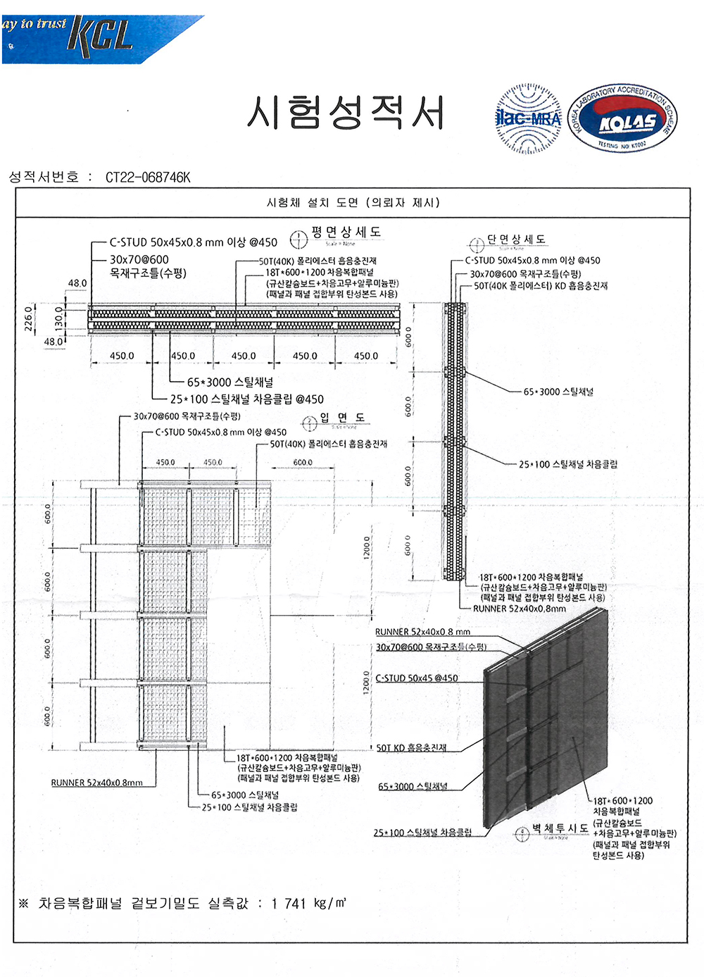 * 시험체 : KD방진차음벽시스템 - Double Leaf Doubla Layer System