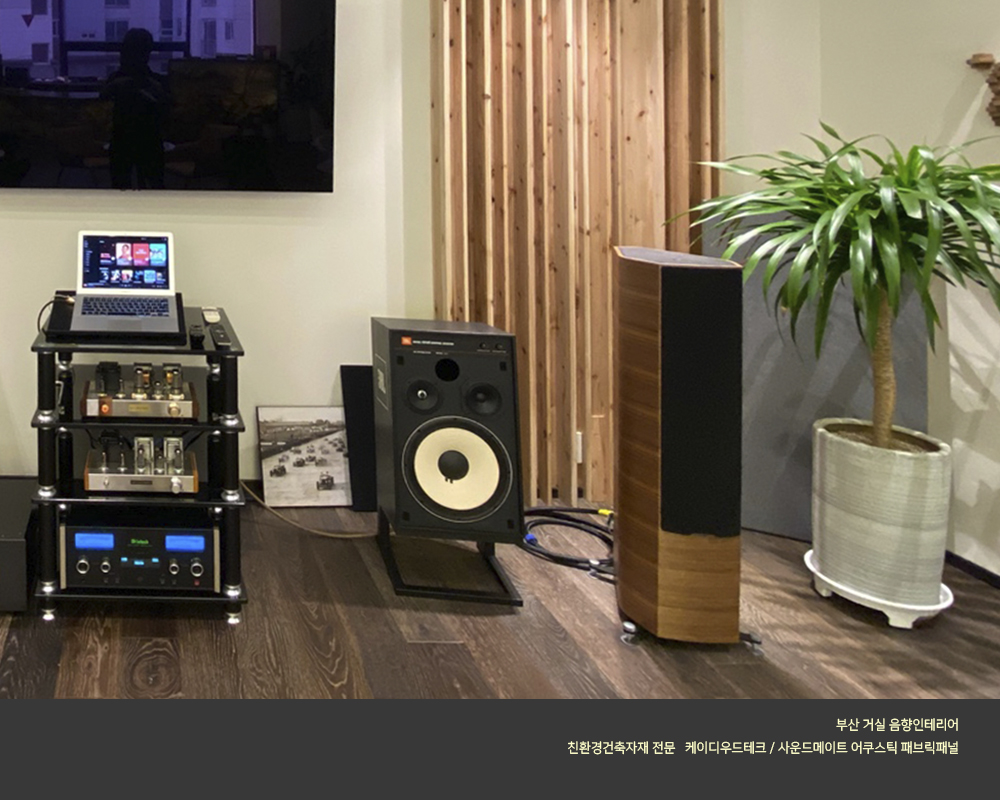 거실 오디오룸의 스피커를 위한 흡음판으로
