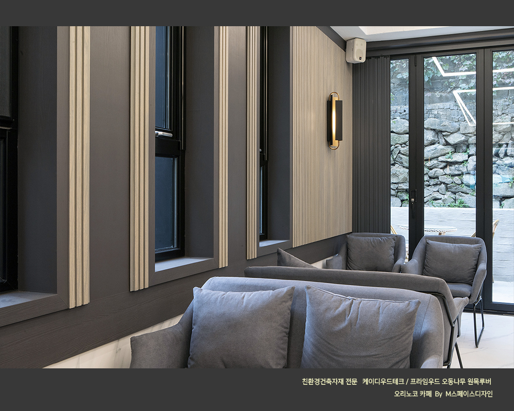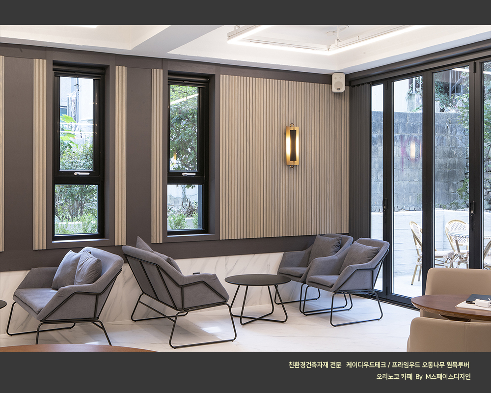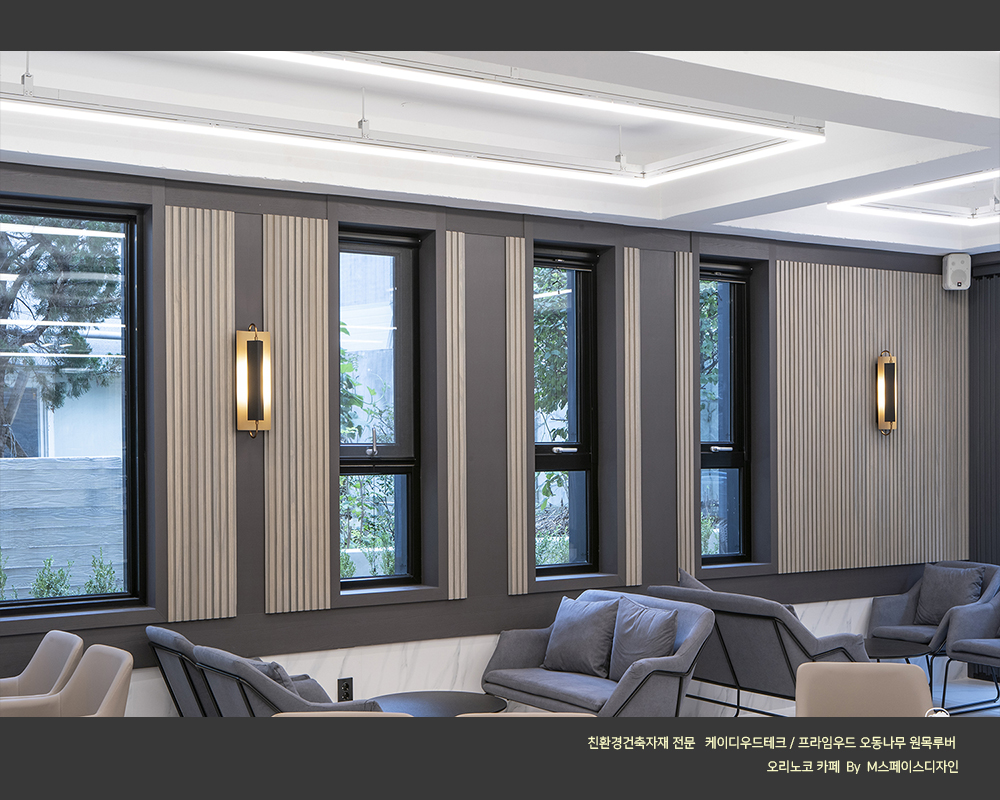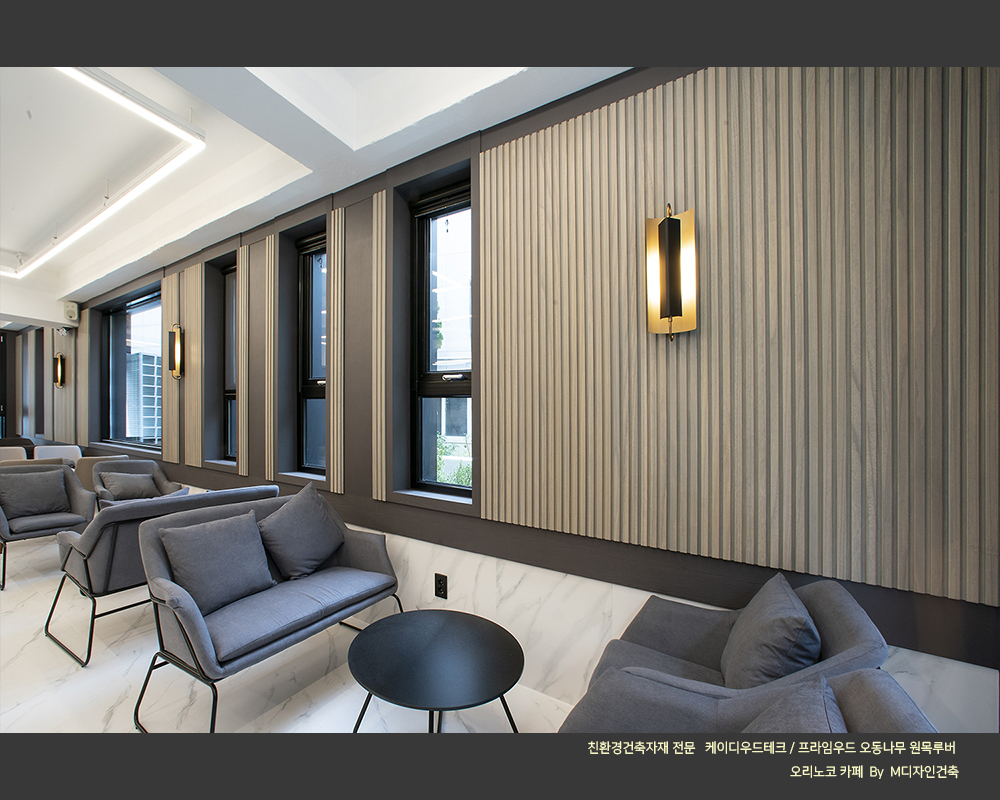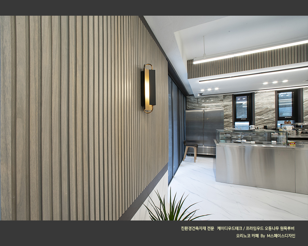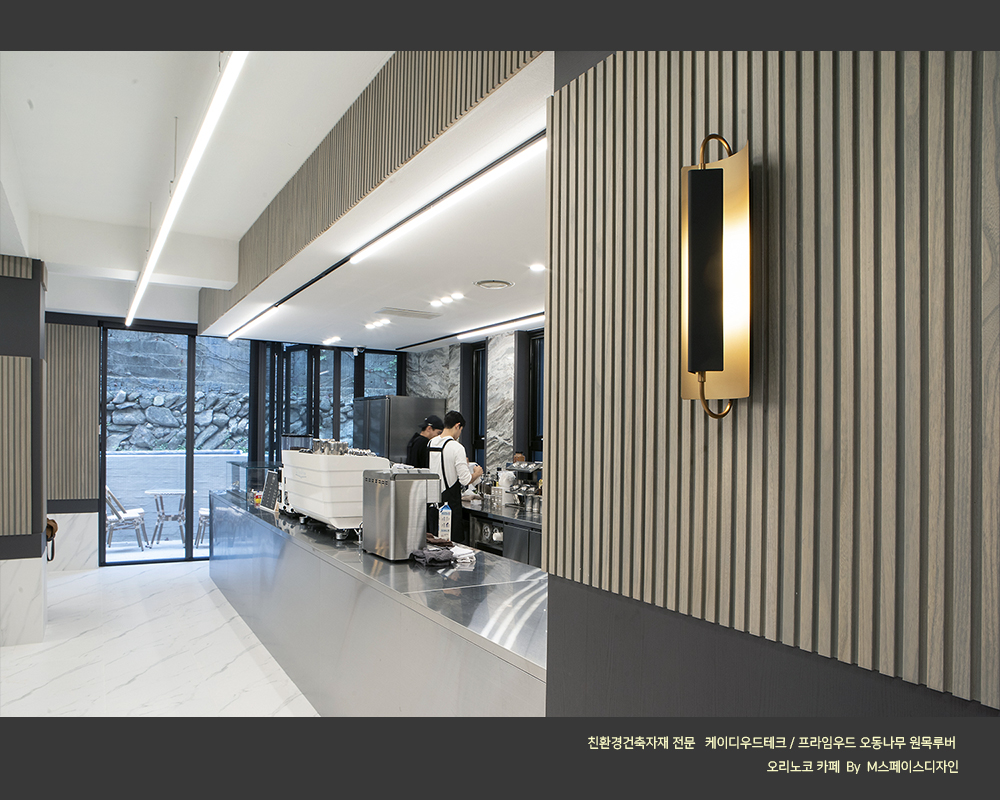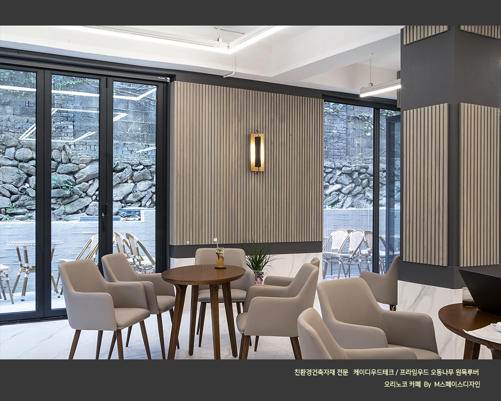 #원목루버_카페인테리어 #오동나무_원목루버 #프라임우드 #찬넬루버 #템바보드 #M블럭 #케이디우드테크 #케이디메이트