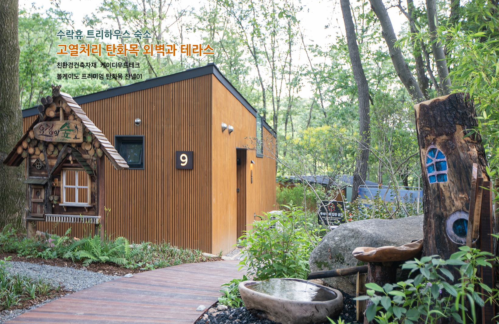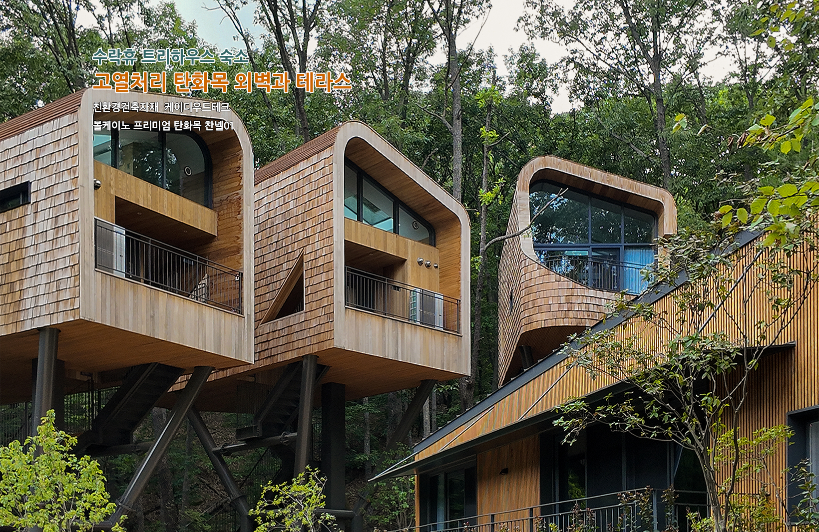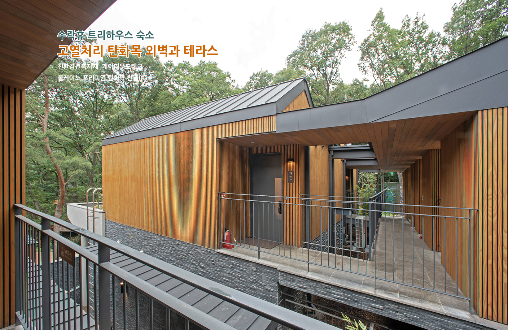 시공 위치: 트리하우스 본관 숙소 전체 외벽과 테라스