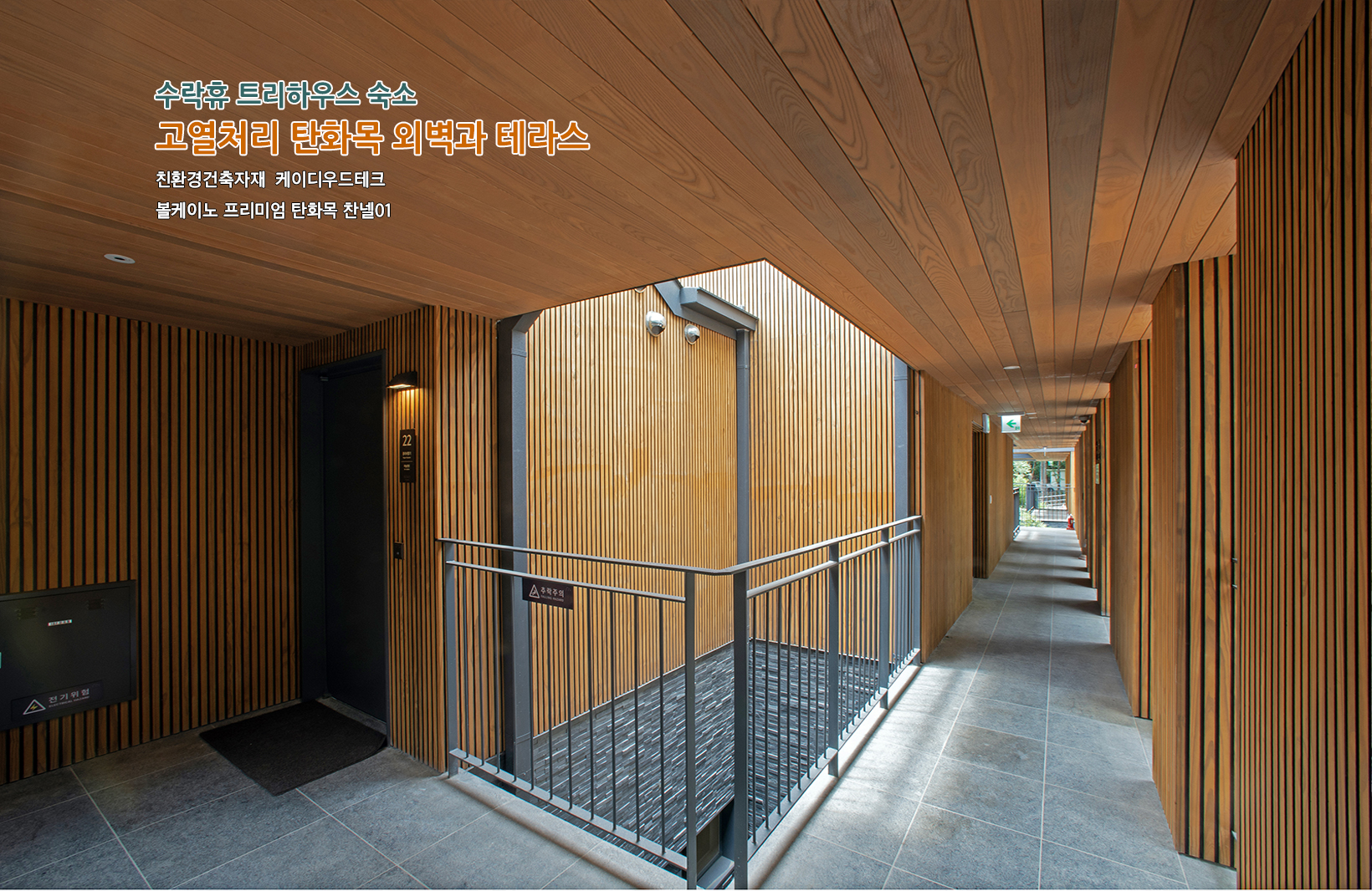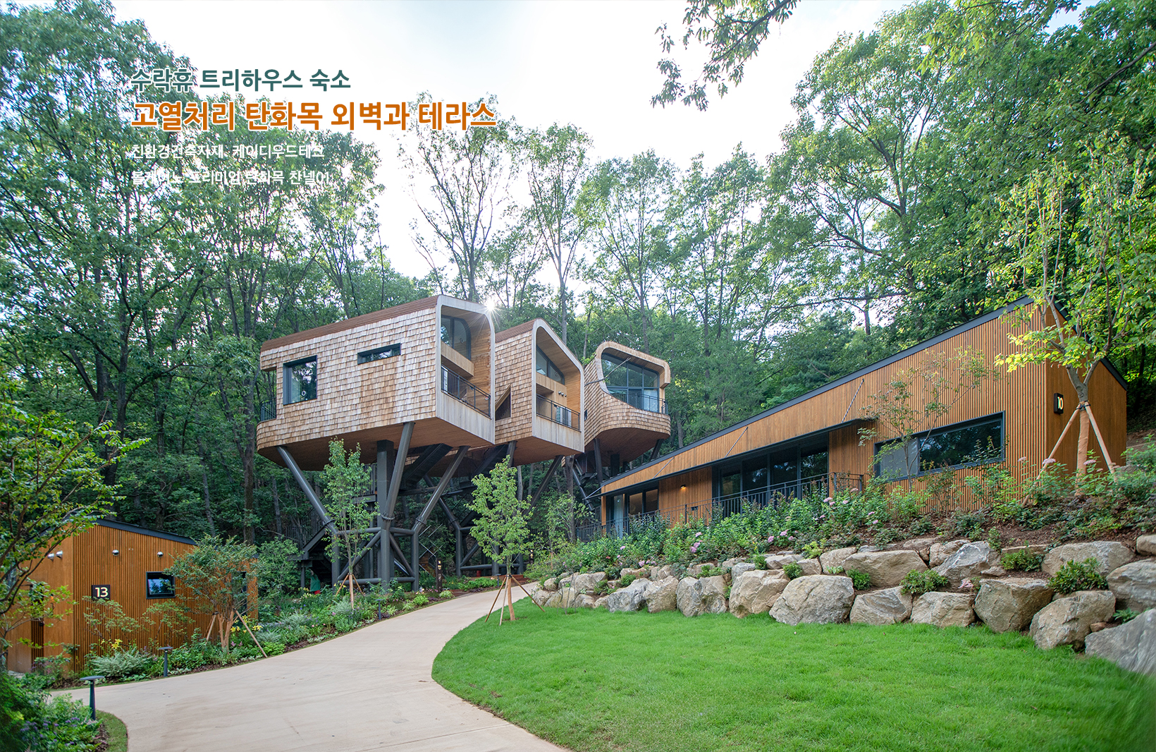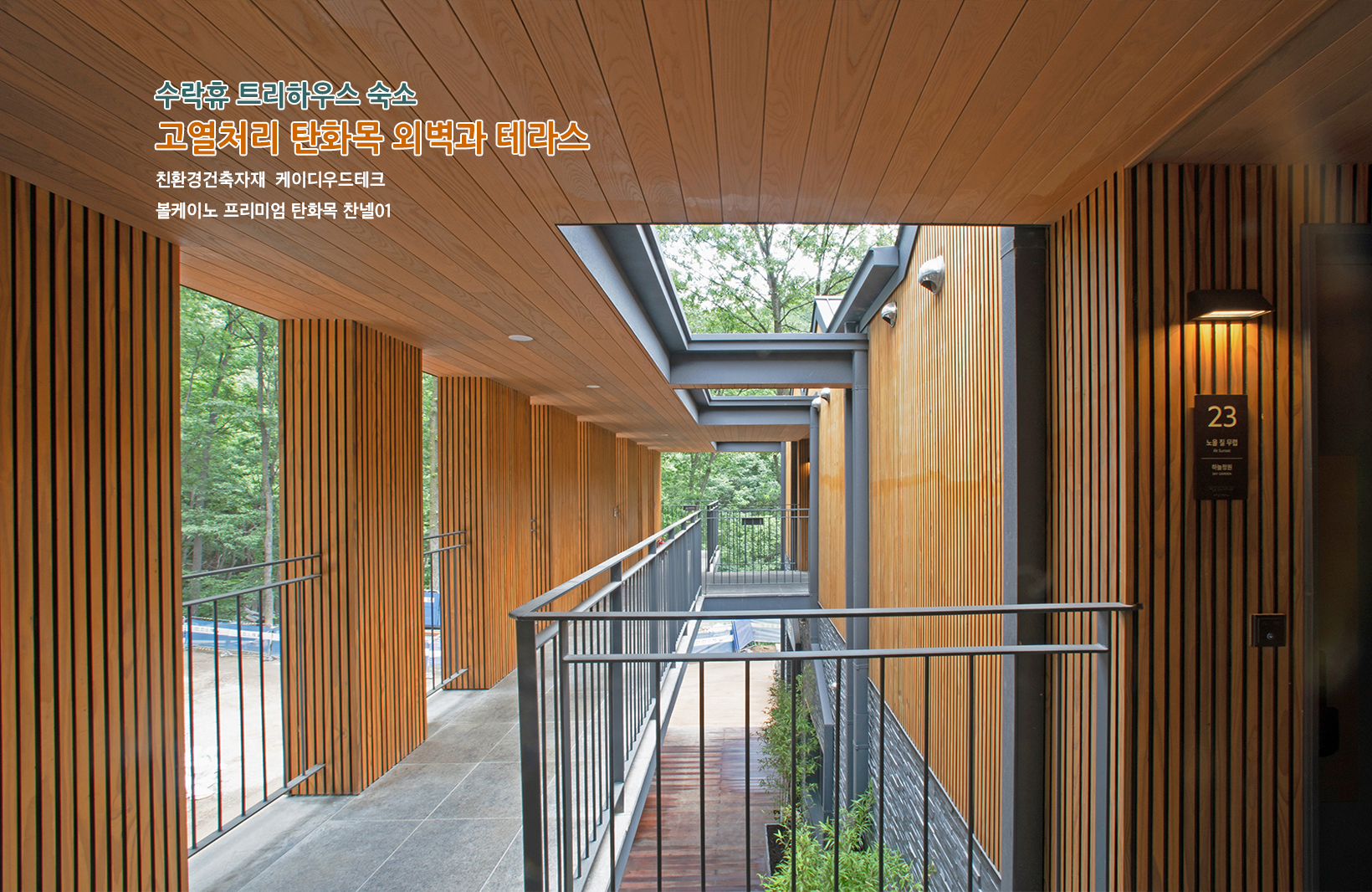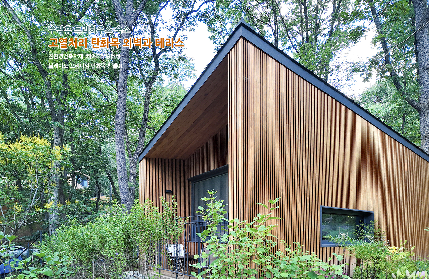 시공 위치: 트리하우스 본관 숙소 전체 외벽과 테라스