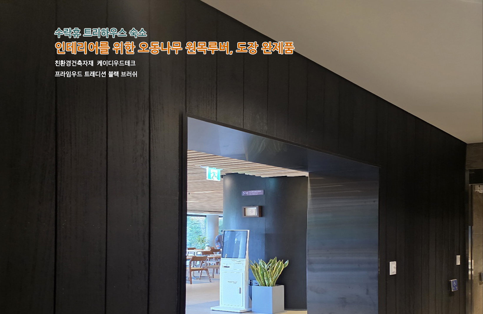 라임우드 트래디션 – 블랙 브러쉬. 오동나무의 텍스처를 높여주는 브러쉬 마감으로 모던한 공간 분위기를 형성.