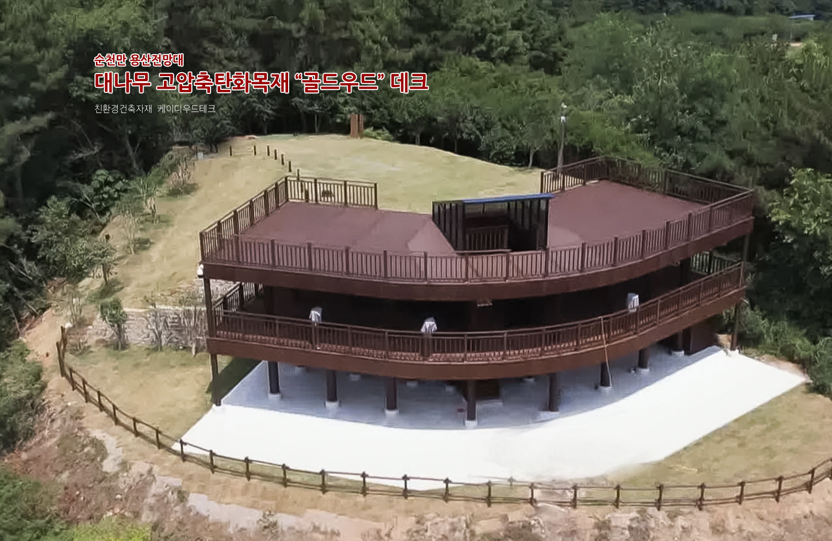 ‘골드우드’는 **2500톤 이상의 압력과 고온 탄화 공정**을 통해 제작된 **KD의 특허 친환경 자재**입니다.