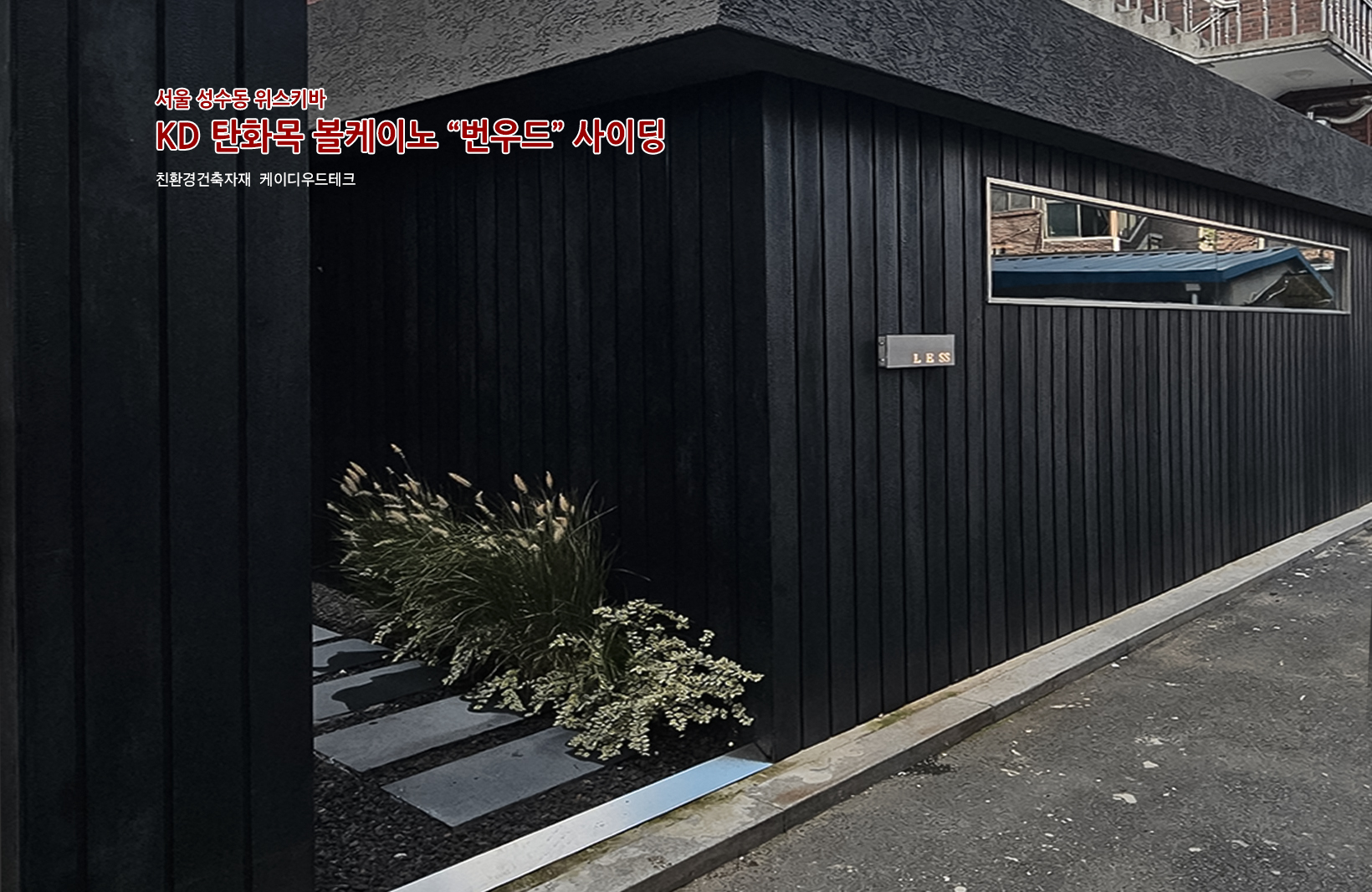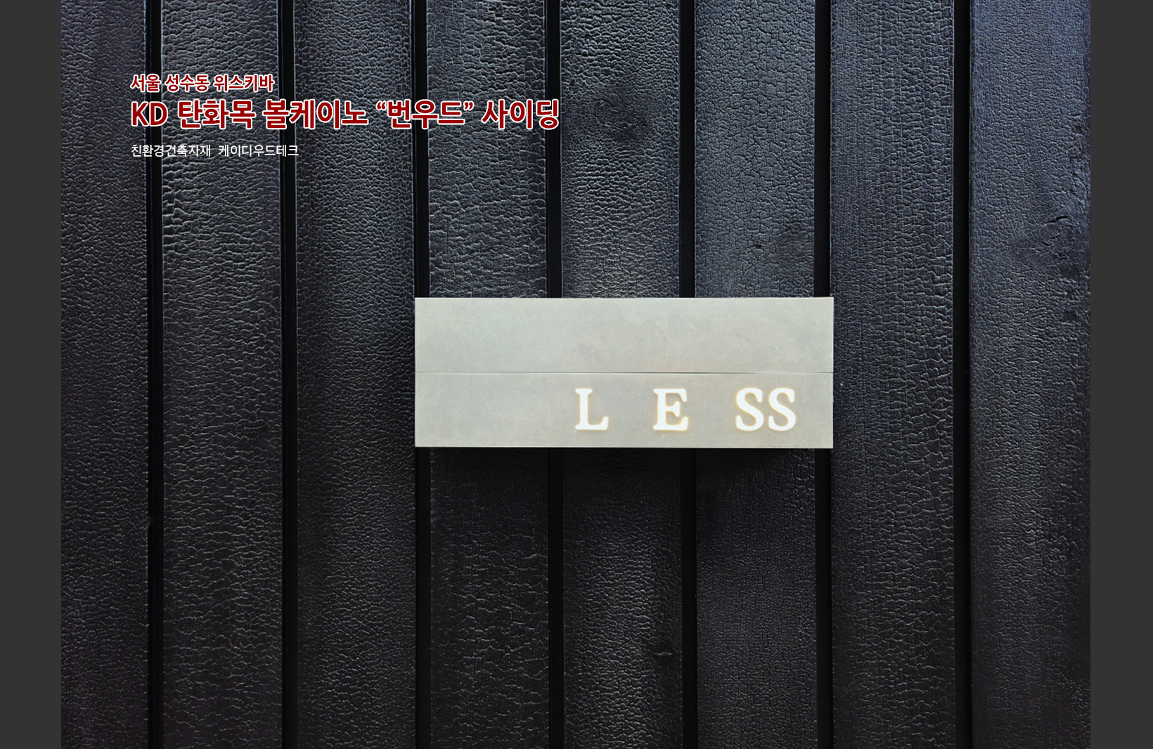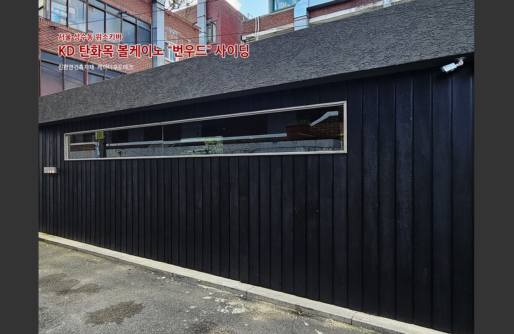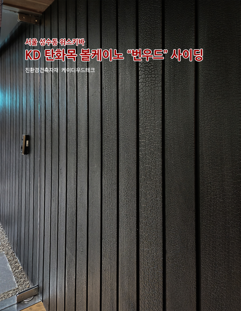 서울 성수동 위스키바, KD 탄화목 ‘볼케이노 번우드’ 사이딩 시공 스펙