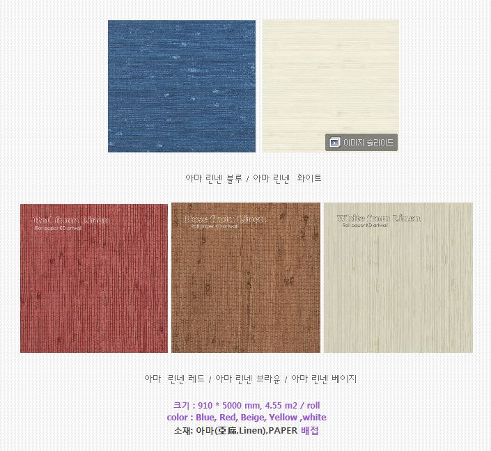 <<  아마 린넨벽지 컬러 및 사이즈 >>