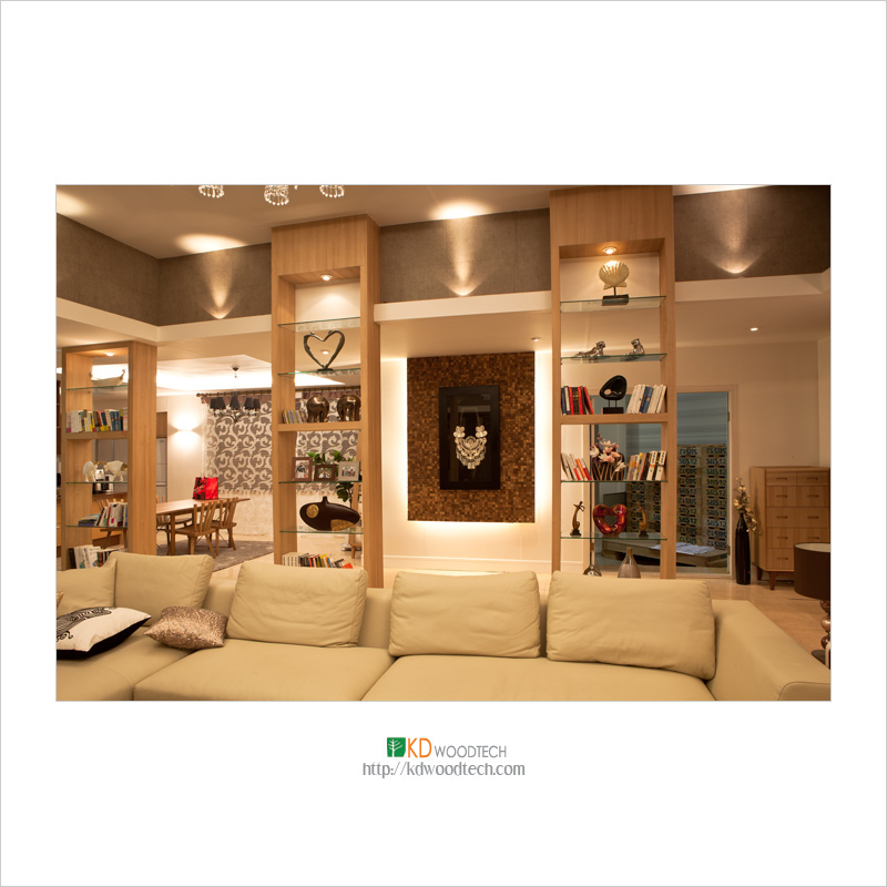 콘솔 배경 아트월로서 화이트 크림 벽마감과 자연스러운 호흡을 할수 있도록